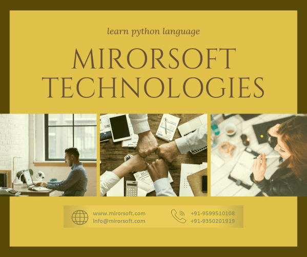 Python is one ofthe foremostcommon dynamic programming languages that’sbeing employednowadays. … compared to alternative programming languages like C++ and Java, it needs the computer programmer to develop lesser codes. It offers automatic memory management and a number of othercustomary libraries for the computer programmer. Mirorsoft Technologies Offering Python Training In Greater Noida